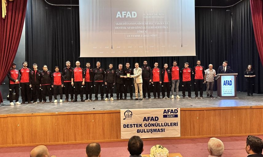 Siirt'te, İl Milli Eğitim Müdürlüğü Konferans Salonu'nda 'AFAD Destek Gönüllüleri Kimlik Kartı Dağıtım Töreni' gerçekleştirildi. Program, afet konulu bir tanıtım videosunun gösterimi ile başladı.