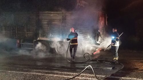 Siirt-Veyselkarani kara yolunda bir buğday yüklü tır, yangın sonucunda tamamen zarar gördü.