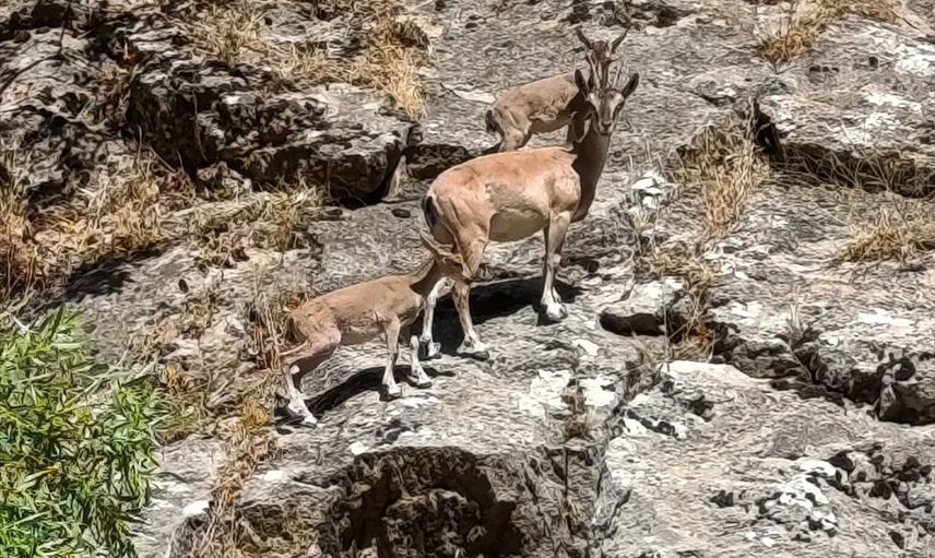 Siirt'in Şirvan ilçesinde, Ormanbağı ile Karaca köyleri arasında bulunan Kezer Çayı eteklerinde piknik yapmak amacıyla bir araya gelen vatandaşlar, doğanın sürpriz misafirleri olan dağ keçilerini keşfetti.