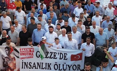 Etkinliğe katılan sivil toplum kuruluşları temsilcileri ve vatandaşlar, "Gazze'de insanlık ölüyor" yazılı pankart açarak durumu protesto etti. Kalabalık, ellerinde Türk ve Filistin bayraklarıyla, sloganlar eşliğinde 15 Temmuz Demokrasi Meydanı'na kadar yürüdü.