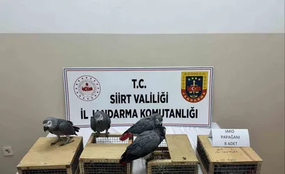 Siirt'te jandarma ekipleri, yol kontrol noktasında Şırnak istikametinden gelen bir aracı durdurdu. Araçta yolcu olarak bulunan B.Ç.'ye ait olduğu belirtilen kafeslerde, kaçak olduğu değerlendirilen 8 adet jako papağan bulundu.