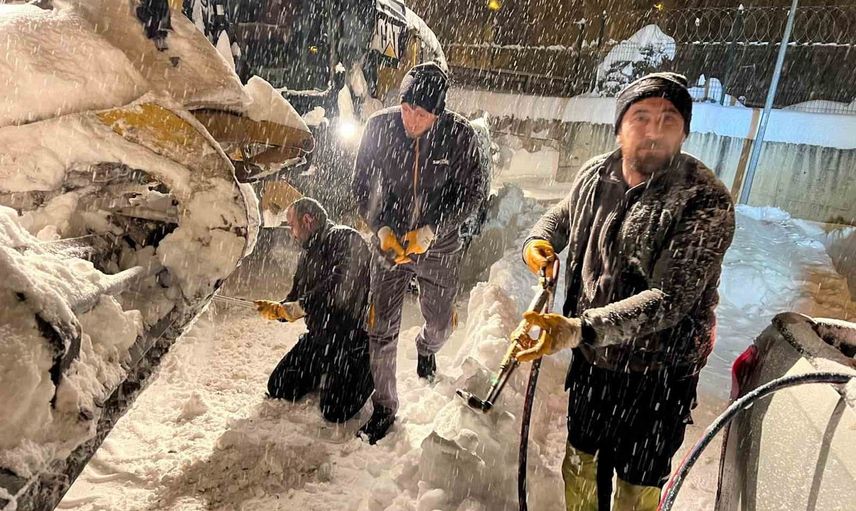 Siirt’te karla mücadele ekipleri yolda mahsur kalan cenaze otobüsü ve hastaları kurtardı