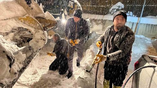 Siirt’te karla mücadele ekipleri yolda mahsur kalan cenaze otobüsü ve hastaları kurtardı