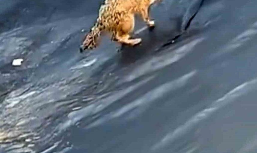 Olayı fark eden işçiler, yaşananları cep telefonu kameralarıyla kaydetti. Görüntülerde kurdun havuz içinde sağa sola koşarak çıkmaya çalıştığı anlar yer aldı.
