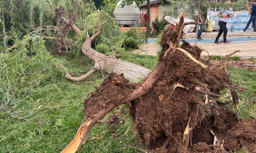 Olayın ardından itfaiye ve belediyenin diğer ekipleri, devrilen ağaç ve uçan çatılarla ilgili müdahalelerine devam ediyor.
