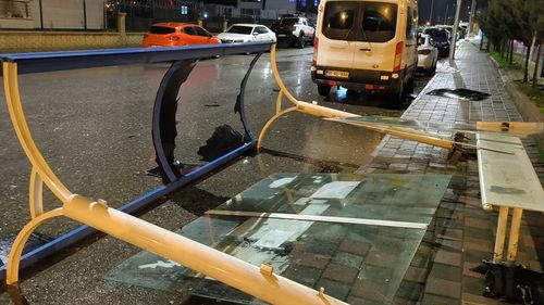 Siirt'te etkili olan şiddetli rüzgar, otobüs durağını devirdi. Olayda can kaybı yaşanmadı.