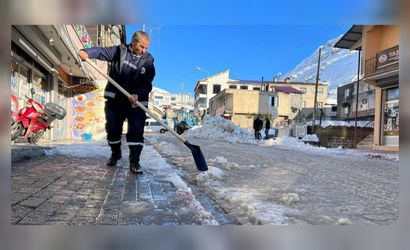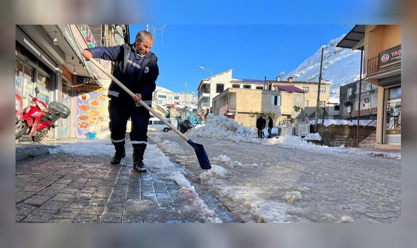 Beytüşşebap ilçe merkezinde ise büyük kar kütleleri oluşurken, belediye ekipleri tarafından karlar ilçe dışına taşınıyor.