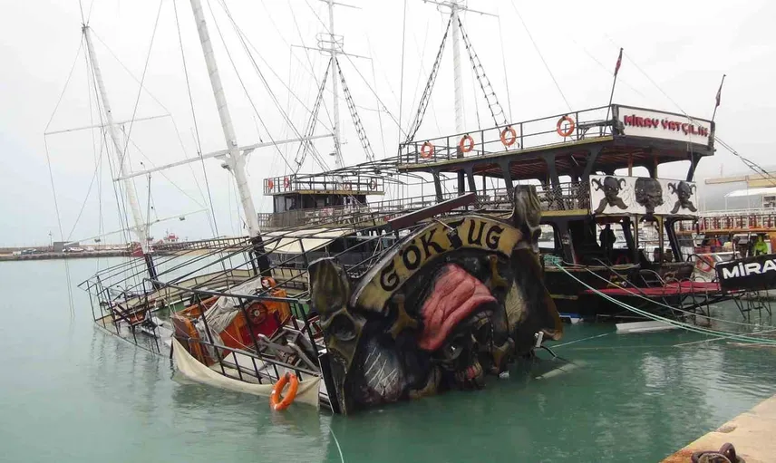 Fırtına, Taşucu Balıkçı Barınağı'nda bağlı bulunan 130 yolcu kapasiteli ve yaklaşık 25 metre uzunluğundaki bir tur teknesinin yan yatmasına yol açtı. Dalgaların etkisiyle su alan tekne kısa sürede battı. Olayda can kaybı yaşanmadı, ancak teknede maddi hasar meydana geldi.