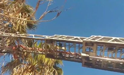 MERSİN’İN SİLİFKE İLÇESİNDE GÜNLERDİR BİR PALMİYE AĞACININ TEPESİNDE MAHSUR KALAN SOKAK KEDİSİ, DUYARLI VATANDAŞLARIN İHBARI ÜZERİNE İTFAİYE EKİPLERİ TARAFINDAN KURTARILDI.