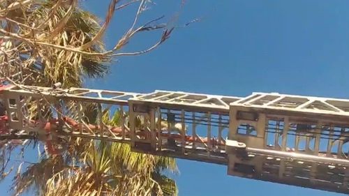 Silifke'de palmiye tepesinde mahsur kalan sokak kedisi itfaiye tarafından kurtarıldı