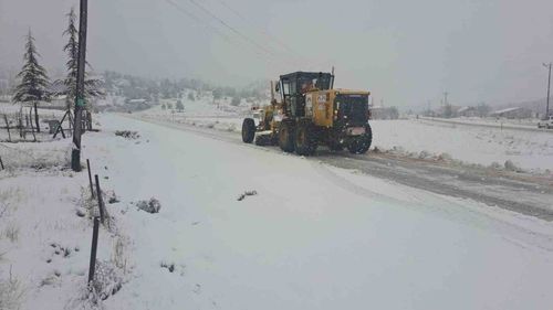 Silifke'nin yüksek rakımlı kırsal mahallelerinde etkili kar yağışı sonrası ekipler, 1 greyder, 1 kar küreme aracı ve 7 personelle yolları açık tutmak için çalışıyor.