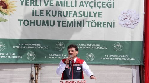 Silivri'de düzenlenen törende, çiftçilere ayçiçeği ve kuru fasulye tohumları dağıtıldı.