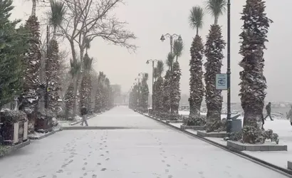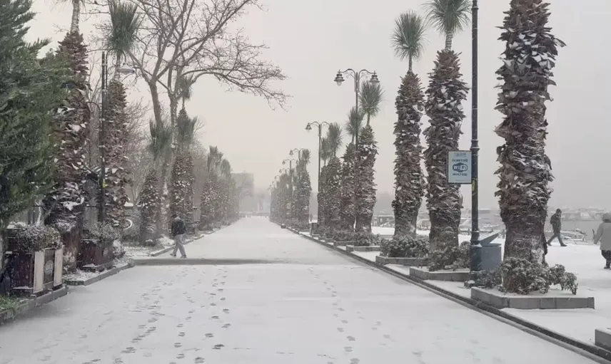 Silivri Sahili de kar yağışı sırasında dikkat çekici bir görsellik sundu. Sahil bandında oluşan beyaz örtü, bölgedeki kış manzaralarına farklı bir estetik kattı.