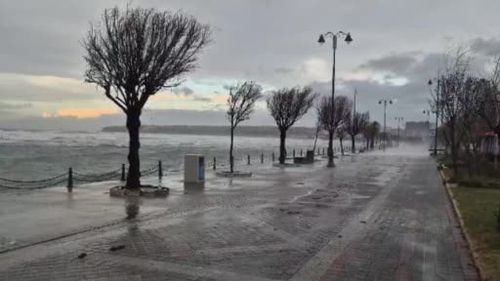Silivri sahilinde sabah saatlerinden itibaren etkili olan lodos, rüzgar hızının yer yer 40 km/saat seviyelerine yaklaşmasıyla dalga boylarını tehlikeli seviyelere çıkardı.