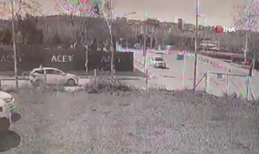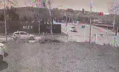 Çarpmanın etkisiyle motosiklet sürücüsü savrularak yaralandı. Olay anı, çevredeki bir iş yerinin güvenlik kamerası tarafından kaydedildi.