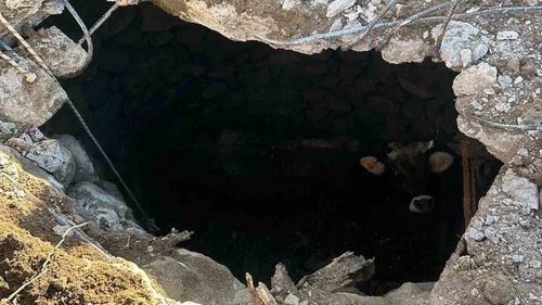 Balıkesir'in Sındırgı ilçesi Karaağaç Mahallesi'nde 3,5 metrelik kuyuya düşen inek, itfaiye ve belediye ekiplerinin iş makinesi destekli çalışmasıyla kurtarıldı.