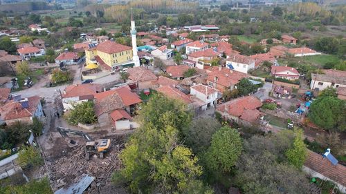 Sındırgı'da deprem sonrası AFAD koordinasyonunda ağır hasarlı konut, iş yeri ve hayvan damlarının kontrollü yıkımı ile moloz temizliği devam ediyor.