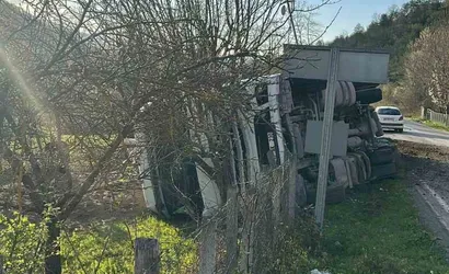 Sinop Ayancık’ta kum yüklü kamyon devrildi: Sürücü yaralandı