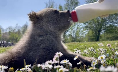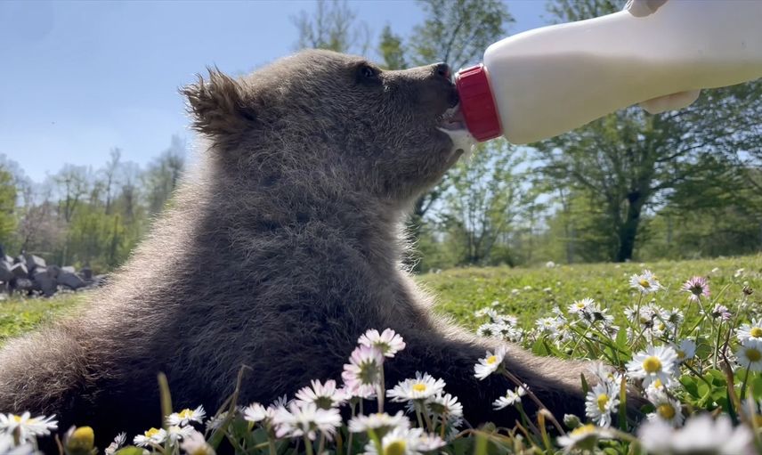 Tarım ve Orman Bakanlığı Doğa Koruma ve Milli Parklar Sinop 10. Bölge Müdürlüğü veteriner hekimleri, köylüler tarafından doğada bulunan 2 ayı yavrusunu sütle besledi.