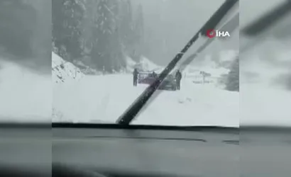 Vatandaşların cep telefonu kameralarıyla kaydettiği görüntülerde bazı araçların yolda mahsur kaldığı, bazı sürücülerin ise zincir takma çalışması yaptığı görüldü. Görüntüler, bölgedeki ulaşımın yağışın etkisiyle aksadığını ve sürücülerin tedbirli olması gerektiğini ortaya koyuyor.