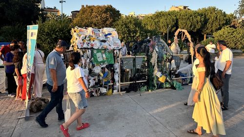 Sinop'ta çevre kirliliğine dikkat çekmek için yürütülen projede, deniz ve sahillerden 9 ton çöp toplandı ve sergilendi.