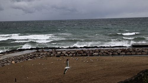 Sinop'ta meydana gelen fırtına, yüksek dalgalar oluşturdu ve balıkçıların denize açılmasını engelledi.