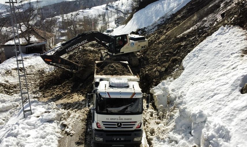 Sinop'ta heyelan sonucu kapanan köy yolu, İl Özel İdaresi ekiplerinin çalışması sonucu ulaşıma açıldı.