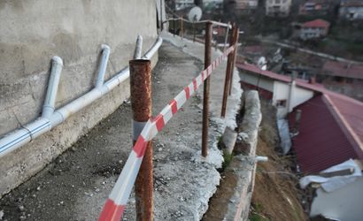 Sinop'un Boyabat ilçesinde istinat duvarının çökmesinin ardından 3 katlı apartman ile bir ev tedbir amaçlı boşaltıldı.