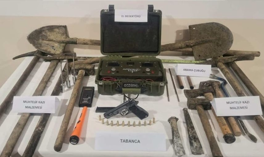 Operasyon neticesinde yakalanan şahısların yanı sıra, yanlarında bulunan bir adet tabanca ile toplam 26 parça kazı malzemesine de el konuldu.
