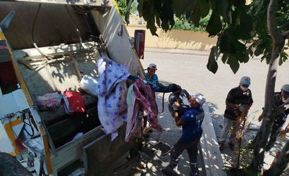 Belediyenin temizlik ekipleri, uzun süren çabaların ardından, evden 7 kamyon çöp toplayarak mahalleden uzaklaştırdı.