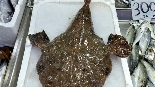 Sinop'ta balıkçıların ağına takılan fener balığı, 400 liradan satışa sunuldu.