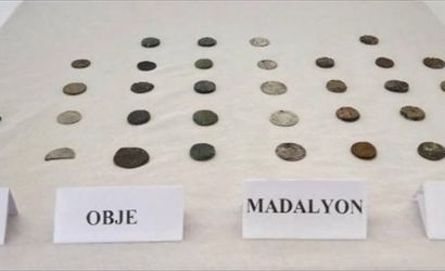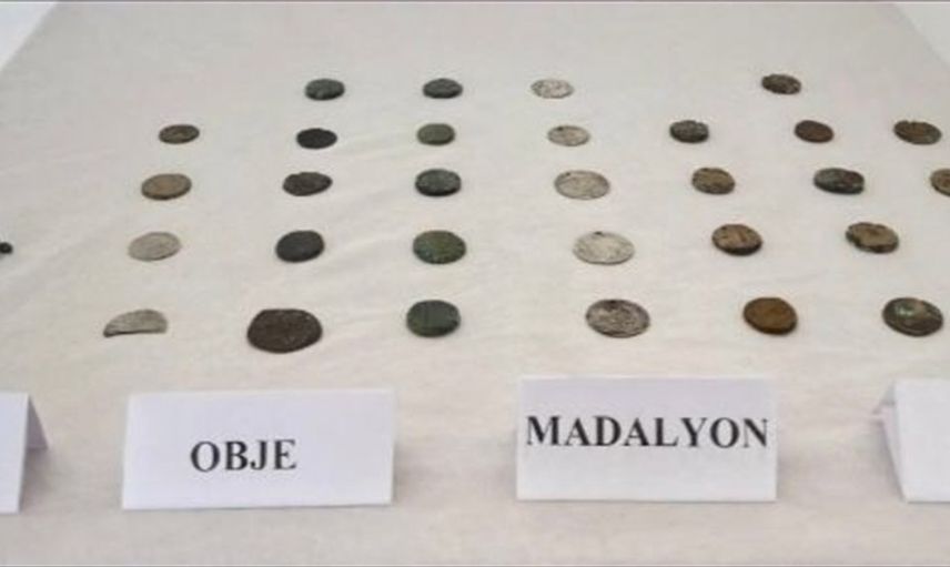 Aramada, 13 adet sikke, 5 adet madalyon, 14 farklı obje ve bir bronz yüzüğün bulunduğu belirtildi. Yakaladığı eserlerle dikkat çeken şüpheli, gözaltına alındı.