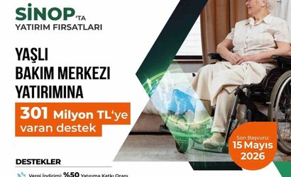 Sanayi ve Teknoloji Bakanlığı'nca başlatılan 2026 Yılı Yerel Kalkınma Hamlesi Teşvik Programı kapsamında, Sinop'ta yapılacak yaşlı bakım merkezi yatırımlarına yönelik 301 milyon TL'ye varan destek paketi ilan edildi.