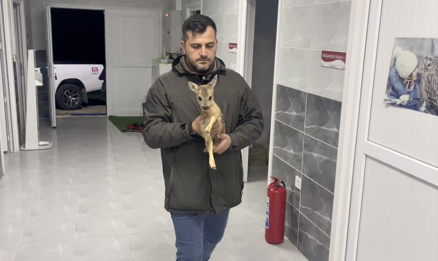 Sinop'ta ormanlık alanda annesiz ve bitkin halde bulunan yavru karaca, Doğa Koruma ve Milli Parklar ekipleri tarafından koruma altına alındı.