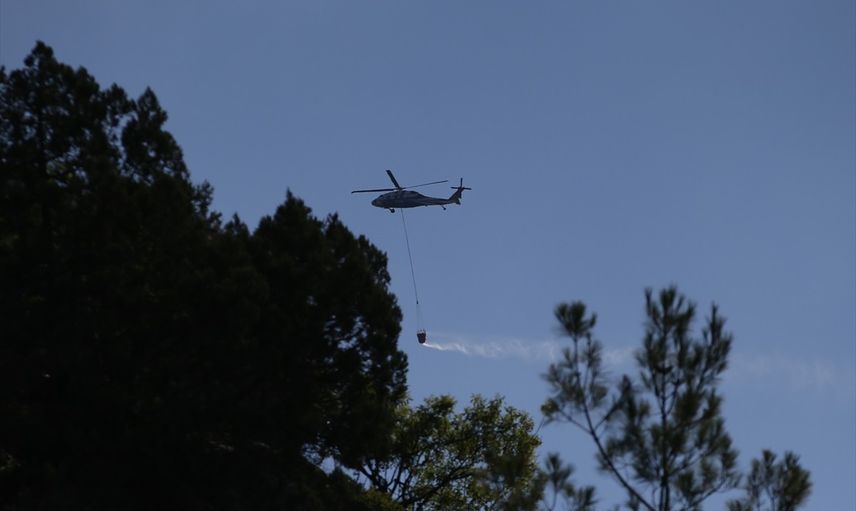 Yangın söndürme helikopterleri, yangına yakın bölgede bulunan ırmaktan su alarak, yangını söndürme faaliyetlerini yoğun bir şekilde sürdürüyor. Ekiplerin aralıksız müdahalesinin sürdüğü köyde, aynı zamanda Türk Kızılay ekipleri de yangında görev alan personele ikramlarda bulunuyor.