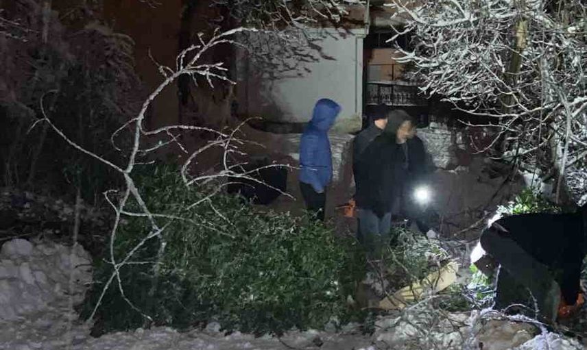 Devrilen ağacın yol üzerinde kapanmaya yol açması üzerine köy halkı kendi imkânlarıyla yolu açmaya çalıştı. İhbar üzerine bölgeye ilgili ekipler sevk edildi ve çalışmalara destek sağlandı.