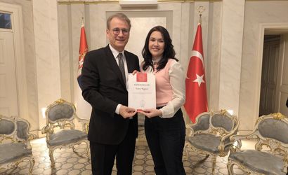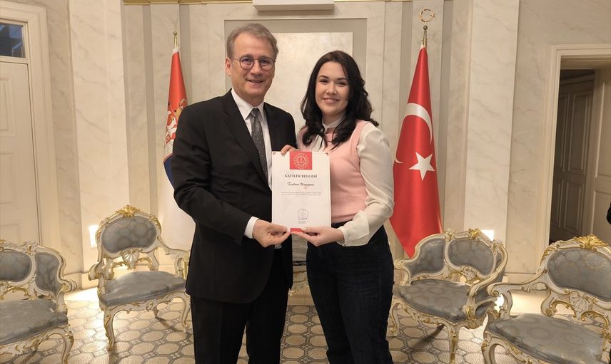 Sırbistan'ın başkenti Belgrad'da, 2024-2025 akademik yılında Türkçe öğrenen 75 kursiyere, sertifikaları düzenlenen törenle takdim edildi.