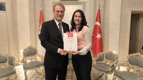 Belgrad'da Türkçe kursunu tamamlayan 75 öğrenciye sertifika verildi. Törene Türkiye'nin Belgrad Büyükelçisi de katıldı.