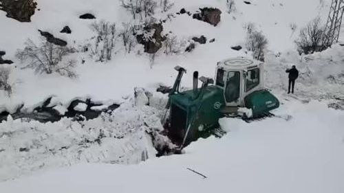 Şırnak’ın Beytüşşebap ilçesinde 2 metreyi aşan karda DSİ'nin ekskavatör ve dozerleri İl Özel İdaresi ve Kaymakamlık ekiplerine destek veriyor.