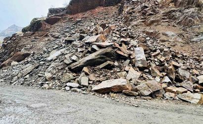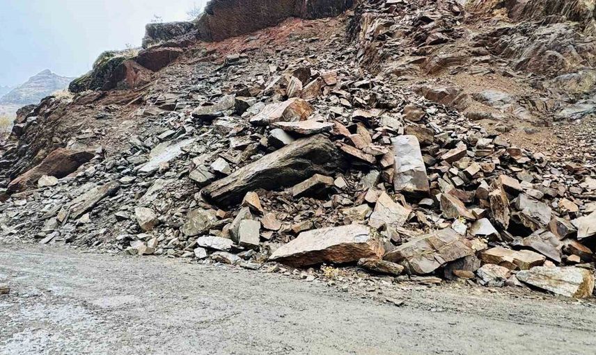 Komato bölgesinde dağdan kopan kaya parçaları yolun kapanmasına neden oldu, ekipler müdahale etti