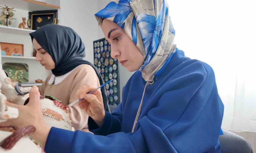 Kursiyerler yalnızca testi üretimiyle sınırlı kalmıyor; magnet gibi küçük hediyelik eşyalar da hazırlanıyor. Üretilen parçalar hem çeyizlik hem de hediyelik olarak talep görüyor ve uluslararası pazarda alıcı buluyor.