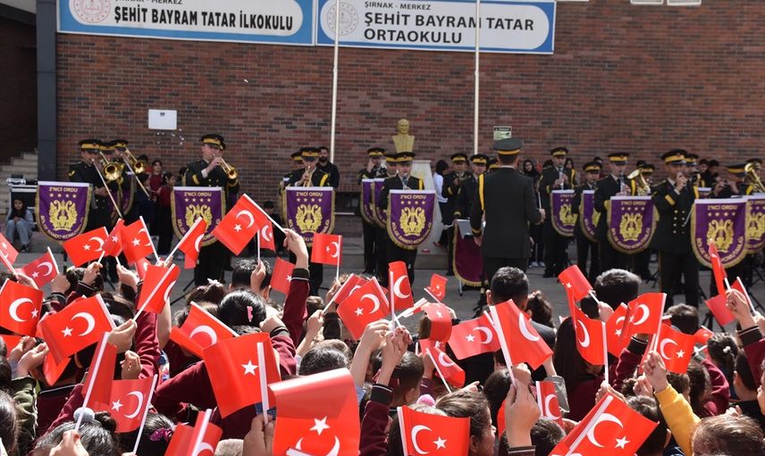Şırnak'ta, 23 Nisan Ulusal Egemenlik ve Çocuk Bayramı nedeniyle askeri bando bir okul bahçesinde konser verdi. 2. Ordu Bölge Bando Komutanlığı ekibi, etkinlikte Şehit Bayram Tatar İlk ve Ortaokulu'nda sahne aldı.