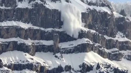 Şırnak'ta Hanke Dağları'ndan kopan kar kütleleri 'kar şelalesi' görüntüsü oluşturdu