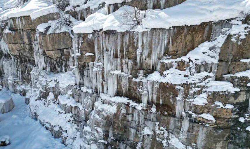 Şırnak’ın Beytüşşebap ilçesine bağlı Hisarkapı köyünde çetin geçen kış şartları sonucu şelaleler ve akarsuların tamamı dondu. Bölgedeki dağ ve kayalarda oluşan dev buz sarkıtları, yer yer yüzeyleri kayganlaştırarak alanları adeta buz pistine çevirdi.