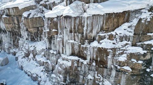 Şırnak'ın Hisarkapı köyünde etkili soğuklarla şelaleler dondu, dağlarda dev buz sarkıtları oluştu; gece sıcaklıkları -20°C'ye kadar düştü.
