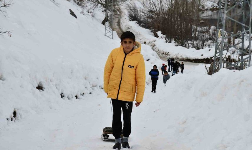 Şırnak’ın Beytüşşebap ilçesinde kar kalınlığı 2 metreye ulaşınca, kapanan yollar yerel çocukların ve yetişkinlerin kızakla kaydığı alana dönüştü. Uzun ve kullanılmayan yollar kilometrelerce boyunca adeta amatör bir kayak pistine dönüştürüldü.