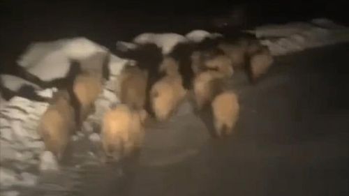 Şırnak'ın Beytüşşebap ilçesine bağlı Günyüzü ve Beşağaç köylerine yiyecek arayan domuz sürüleri indi; olay cep telefonu kamerasına yansıdı.