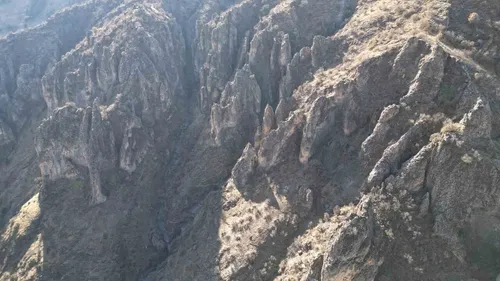Şırnak'ın Beytüşşebap ilçesi Ayrım köyünde 'Kör Kandil' ve Bestler Dereler'de peri bacası benzeri doğal oluşumlar ilk kez dronla görüntülendi.