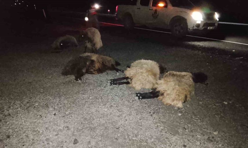 Şırnak'ta otomobil sürüye çarptı: 8 koyun telef oldu