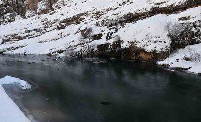 ŞIRNAK'TA HABUR ÇAYI'NIN BİR KISMI SOĞUK HAVANIN ETKİSİNDE KALARAK DONDU.